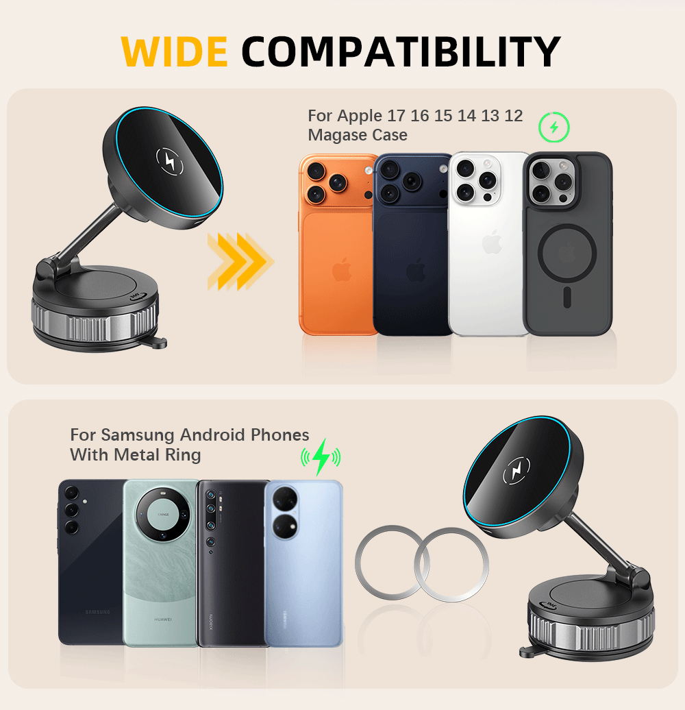 Magnetic Wireless Charging Vacuum Car Mount